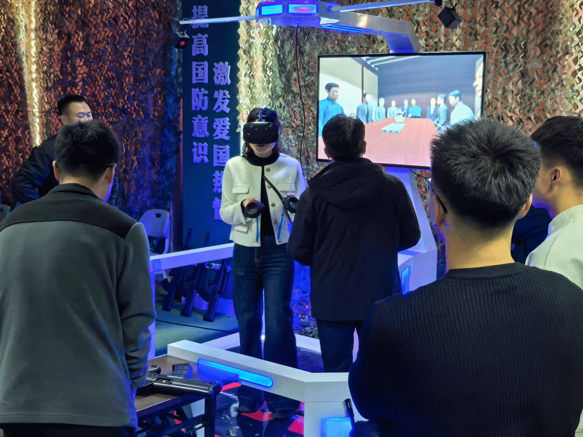 国防教育实践基地,师生们详细了解了该校将国防教育、心理健康教育与新生军训有机融合的创新做法。基地设有体能训练区、心理挑战区、模拟射击区及VR红色教育体验区,为学生提供了寓教于乐、以训促教的国防教育新模式。