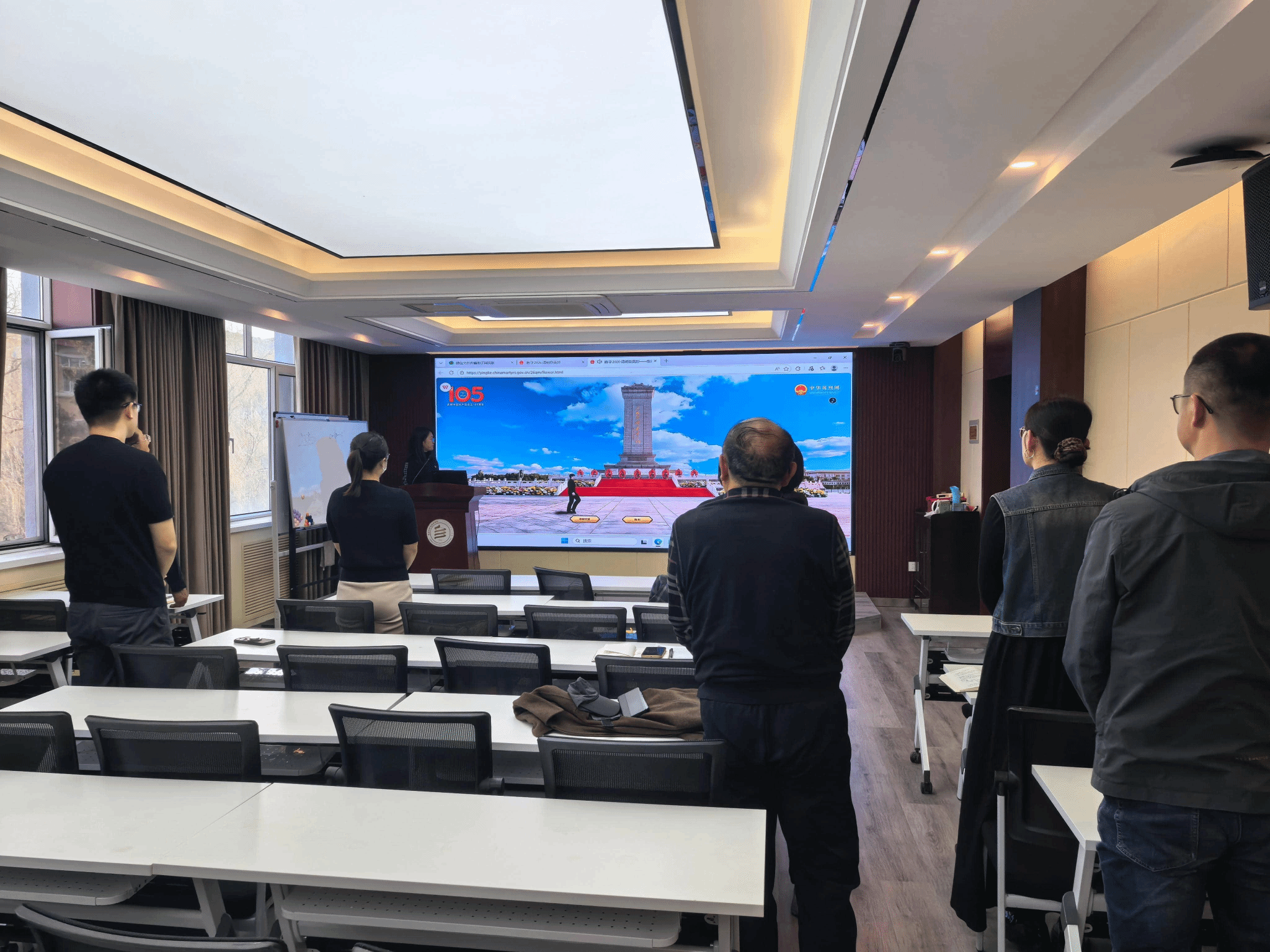 三楼智慧教室开展“祭奠英魂、砥砺初心”主题党日活动,全体党员参加。活动中,全体党员集中观看《国家记忆》纪录片《回家》第一集《青山埋骨》,深切缅怀革命英烈,感悟和平生活的来之不易。随后,登录网络祭奠平台,网上献花篮、默哀致敬,以文明环保的方式寄托对英烈的哀思。