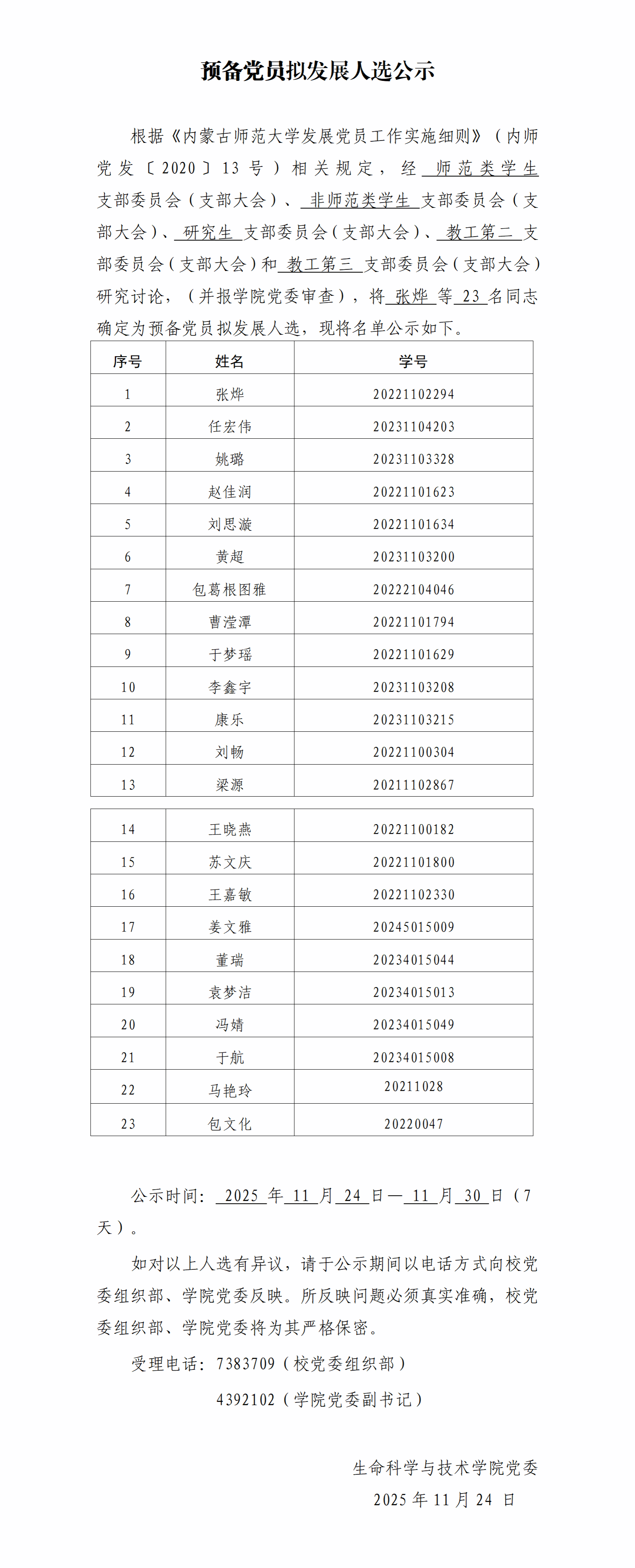 预备党员拟发展人选公示